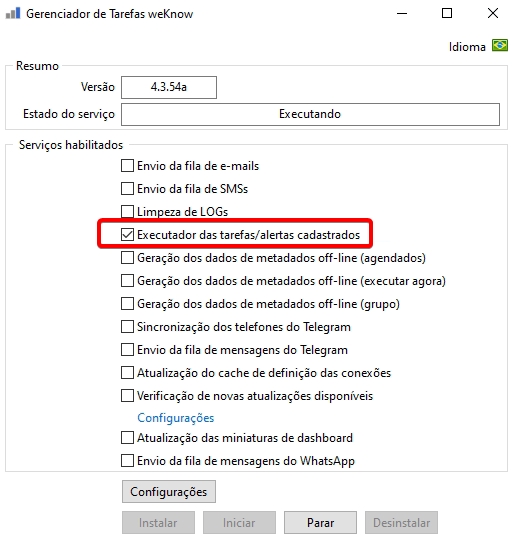 IMPORTANTE: Lembrando que é necessário ativar o executador de tarefas no Gerenciador de Tarefas para iniciar a tarefa.