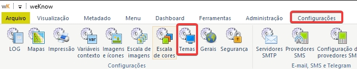 Porém, também é possível que uma escala de cor seja escolhida e definida como padrão do sistema geral. Neste caso, acesse via menu Configurações >> Temas: