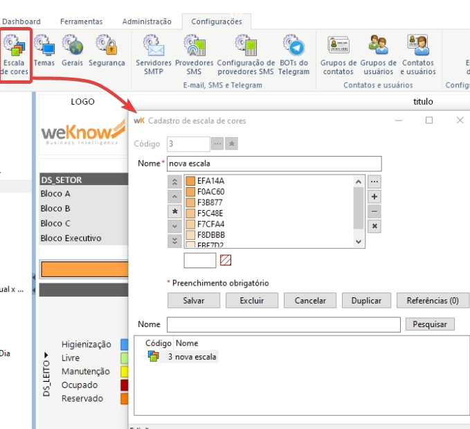 Weknow Client Desktop – Criação e Edição de Dashboards - Recursos Extras de Dashboards - Referências - Escala de Cores