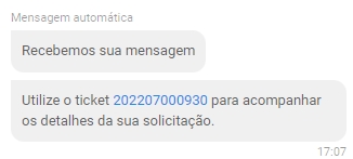 Ao enviar será informado o número do protocolo do seu ticket, você deve salvar para acompanhar o andamento da solicitação.