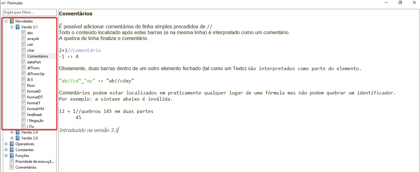 • Nesta versão foram realizadas diversas melhorias no sistema de fórmulas desde alterações na sintaxe, adições à sintaxe, novos operadores, nova constante e novas funções: