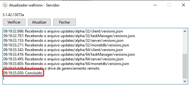 Agora será informada a mensagem de concluído ao finalizar a atualização ou verificação da versão: