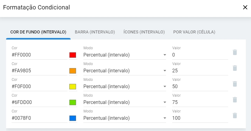 Configure no Weknow Web > Explorador de Dados > Configurações > Formatação Condicional.