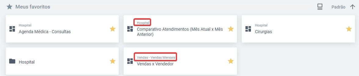 Agora nos favoritos irá mostrar a pasta do dashboard para facilitar a visualização: