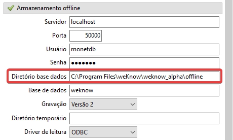 Possibilidade de configurar o diretório dos dados offline