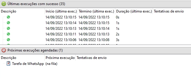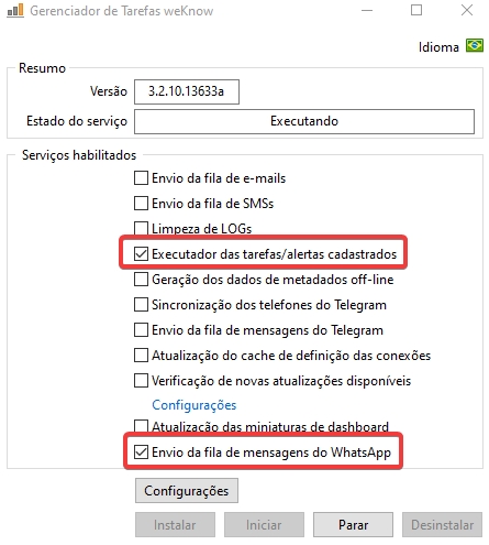 IMPORTANTE: Lembrando que é necessário ativar o envio de mensagens do WhatsApp e executar de tarefas no Gerenciador de Tarefas.