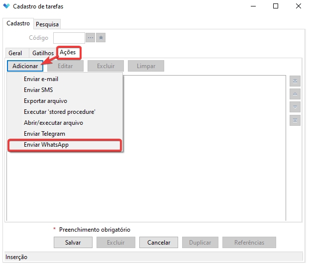 Integração com o WhatsAppAgora será possível criar uma tarefa e realizar o envio através do WhatsApp. Veja com mais detalhes no manual.