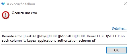 Se o usuário deixar de incluir o nome de algum campo entre aspas duplas, resultando em um erro durante a execução do comando SQL do metadado híbrido, uma mensagem de erro aprimorada será agora fornecida.