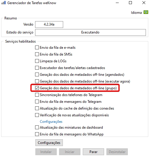 IMPORTANTE: É necessário ativar a opção “Geração dos dados de metadados off-line (grupo)” no Gerenciador de Tarefas para gerar o grupo.
