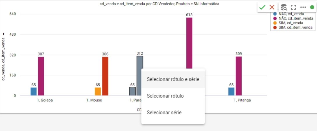 Agora será possível alternar entre os modos de seleção ('rótulo e série', 'rótulo' ou 'série') clicando com o botão direito do mouse sobre um ponto, coluna ou parte do gráfico.