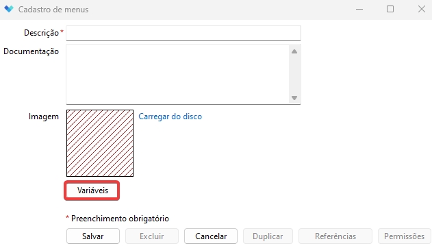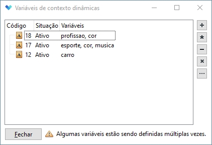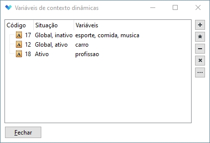Clicar neste botão abre a tela de Variáveis de contexto dinâmicas: