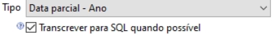 Nos campos parciais de data/hora foi adicionada a opção Transcrever para SQL quando possível. Isso permite ao usuário desativar a transcrição se for conveniente.