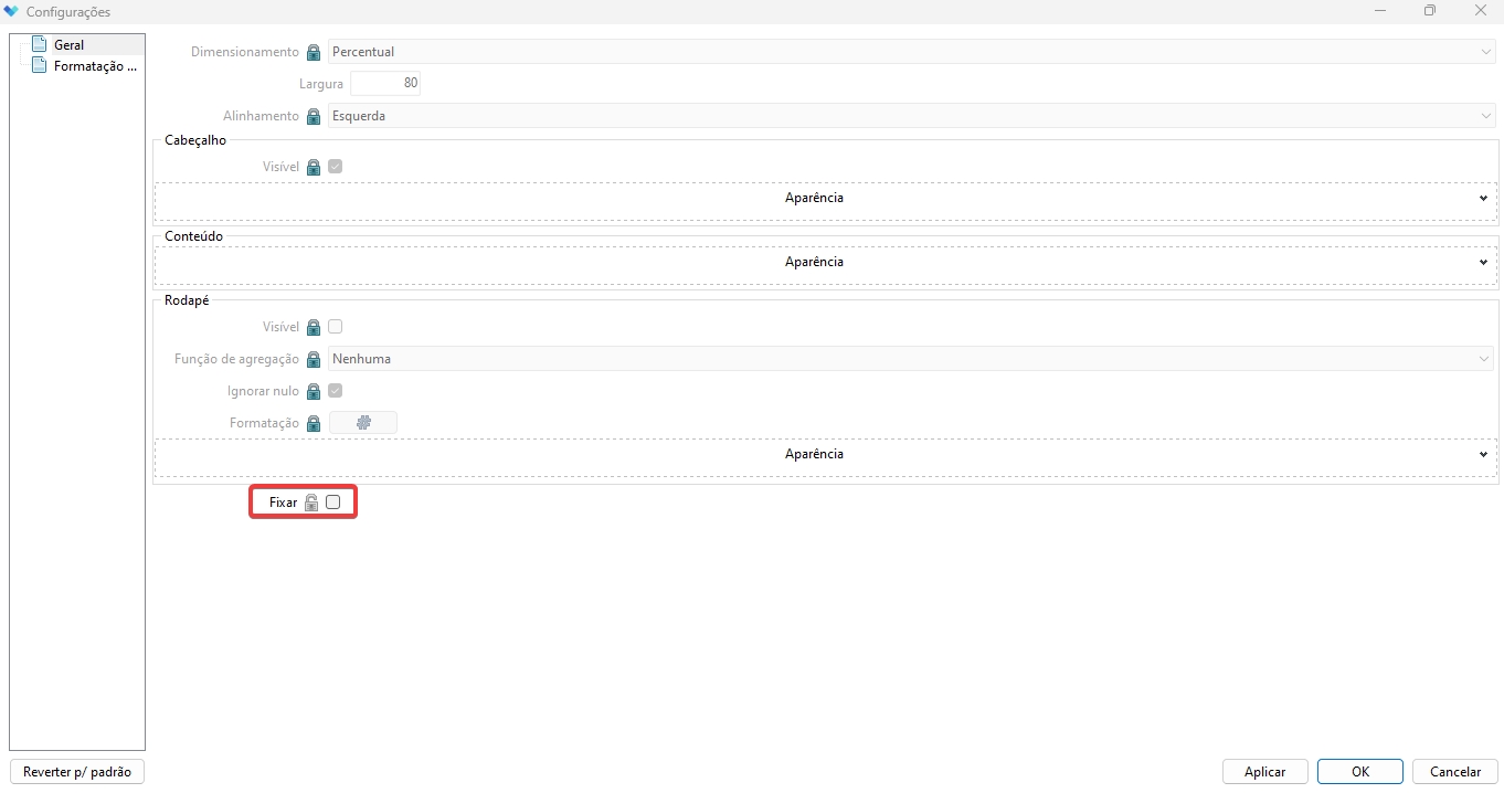 FA Incompatível: Se a função de agregação do rodapé for diferente da função de agregação da coluna, será exibido um alerta.
