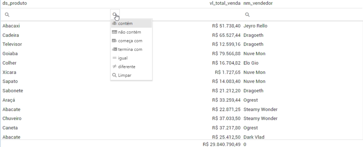 Regras para Cálculo do Total com Filtros Locais: Quando os filtros locais estiverem em uso, o total será calculado conforme as regras abaixo: