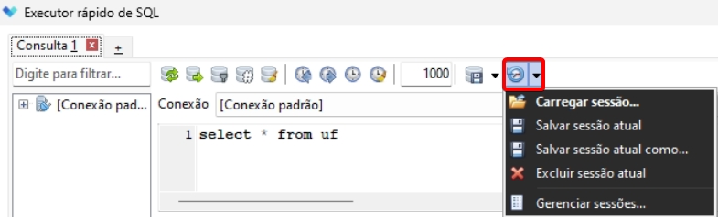 Essa funcionalidade se aplica exclusivamente à tela de execução rápida. Ou seja, quando o editor for aberto de outro local, a última sessão não será carregada automaticamente. No entanto, o usuário pode abrir uma sessão salva, caso prefira.