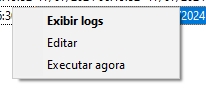Clicar com o botão direito abre um menu flutuante que permite a edição das variáveis daquele usuário e a execução imediata.