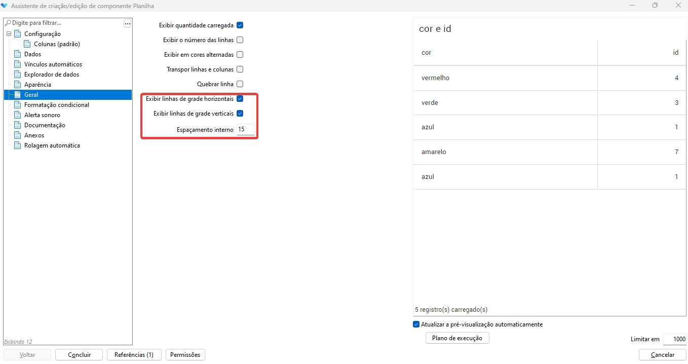 Agora na planilha do tipo monodimensional, é possível exibir as linhas de grade horizontais e verticais, além de configurar o espaçamento.