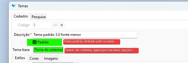 Essas alterações visam melhorar a estética, o alinhamento e a legibilidade dos elementos no tema.