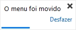 Desfazer a última ação: Sempre que um menu for movido, um pequeno e discreto alerta será exibido no canto inferior esquerdo da tela por 5 segundos, como ilustrado na imagem abaixo.