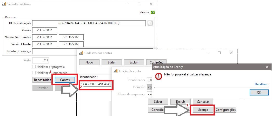 Se ao clicar em Detalhes..., indicar algo relacionado a data expirada, entre em contato com o suporte para reativação;