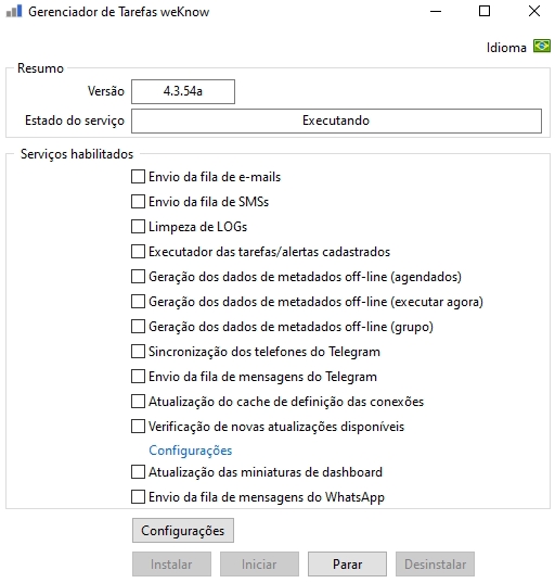 Vale lembrar que se o Gerenciador de Tarefas estiver fechado ou parado, as tarefas não serão executadas, bem como o envio de e-mail e notificações.